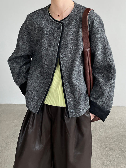 【cim2822】實拍秋冬小眾復古圓領廓形外套251002