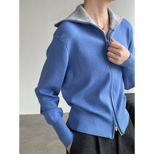 【cim323】實拍設計款雙色立領雙頭拉鍊針織毛衣(含羊毛6%)251002