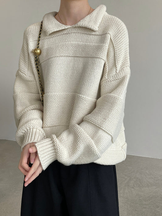 【cim067】實拍秋冬復古粗線polo領慵懶針織毛衣251002
