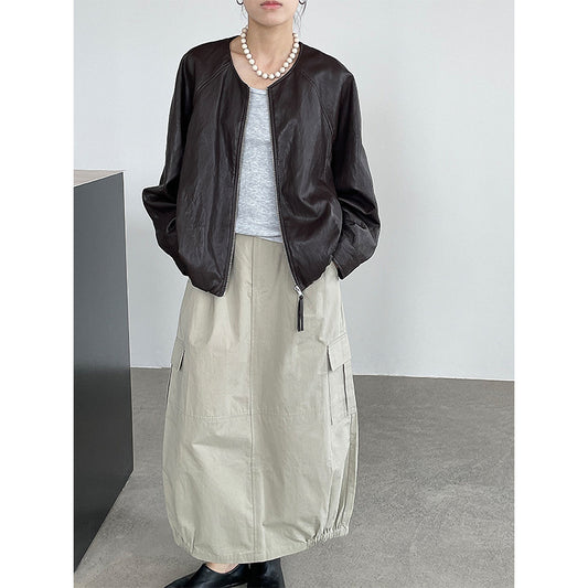 【cim2786】實拍高級小圓領柔軟pu皮外套皮衣251002