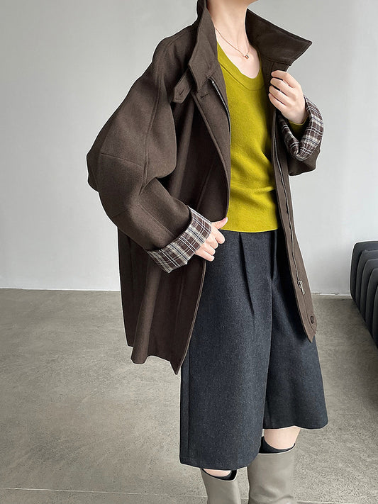 【cim2819】實拍立領毛呢高級感拉鍊大衣外套251002