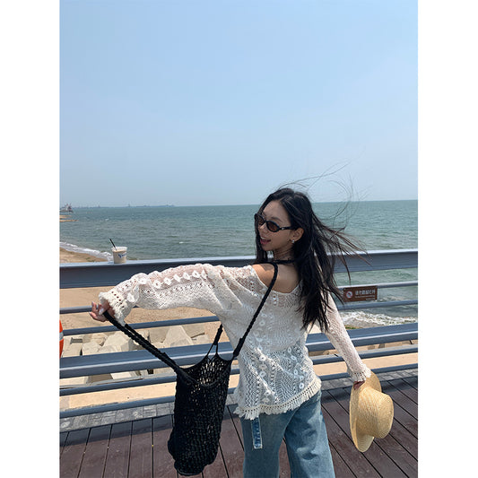 【H5312】 實拍韓系鈎花防曬長袖鏤空針織250610