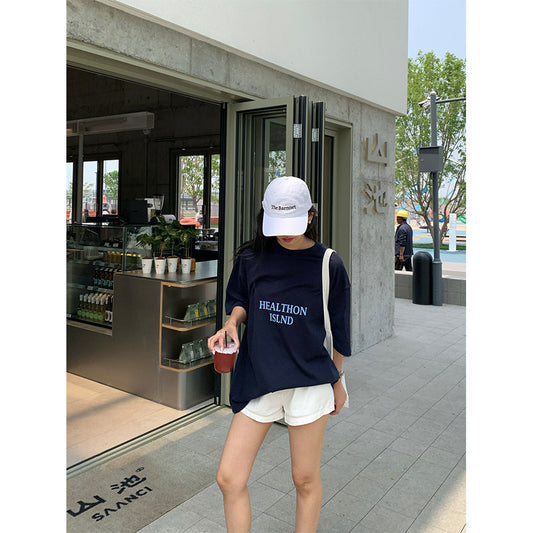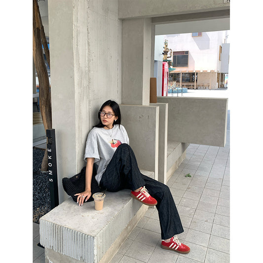 【H5285】實拍夏天韓國蘋果印花大版短袖寬鬆T恤250603