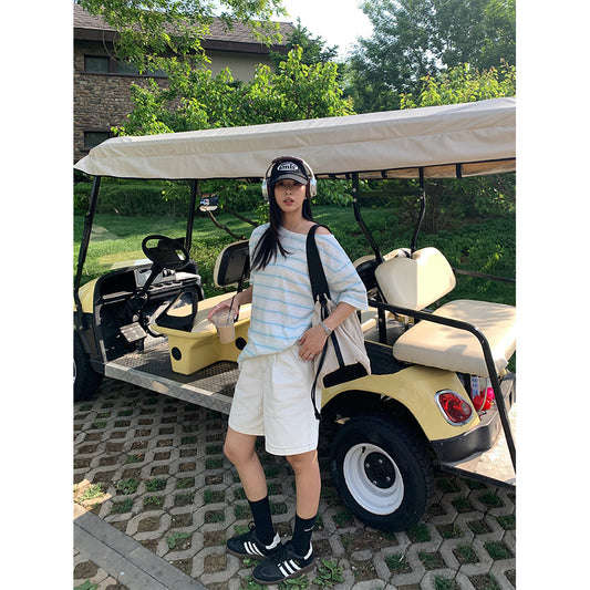 【H5280】實拍韓國夏天白色五分牛褲250603