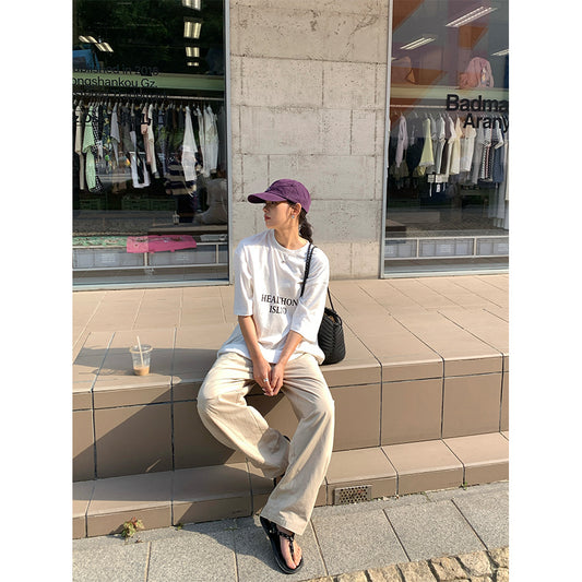 【H5296】實拍韓系夏季純棉慵懶時髦鐮刀工裝褲250603