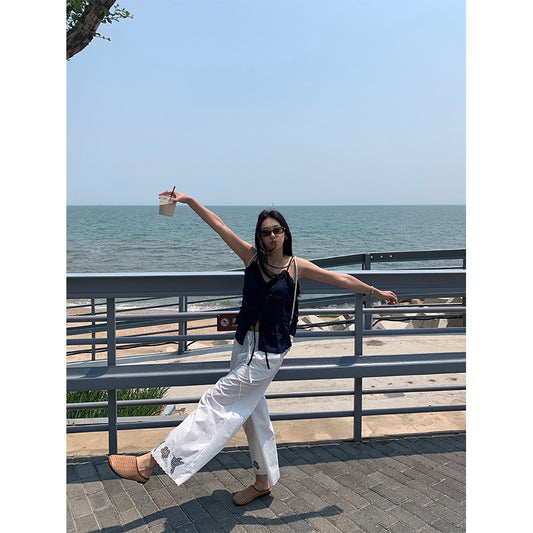 【H5299】 實拍夏天高級感重工刺繡清新感直筒褲250610