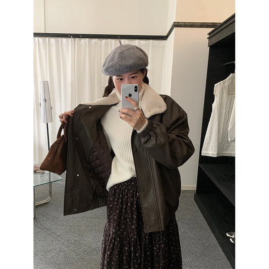 【H5485】實拍高級感毛領PU皮衣夾棉加厚外套251109