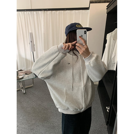 【H5495】實拍男友寬鬆款刺繡長袖連帽衞衣外套251109