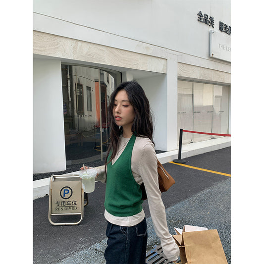 【H5416】實拍韓系氛圍套裝 針織背心+長袖針織衫250909