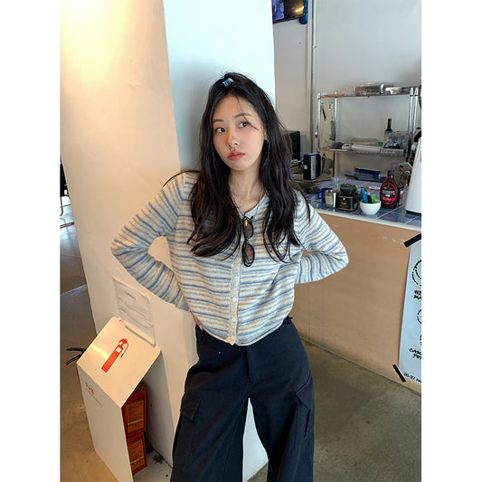 【H5403】實拍韓系復古超可愛條紋針織開衫250902