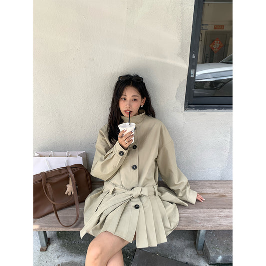 【H5400】實拍韓系慵懶卡其立領收腰風衣外套250902