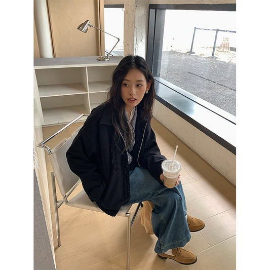 【H5404】實拍早秋微甜帥氣大翻領拉鍊夾克外套250909