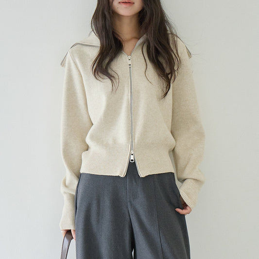【LD3262】實拍雙拉鍊大翻領慵懶針織外套251012