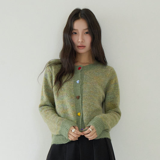 【LD3271】 實拍復古彩紗愛心扣圓領毛衣開衫251020