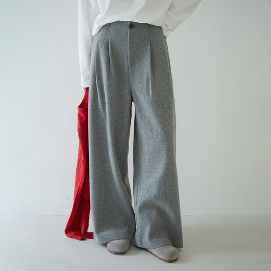 【LD3266】實拍秋冬簡約毛呢闊腿褲休閒褲251012