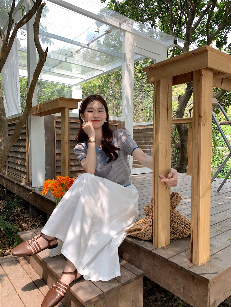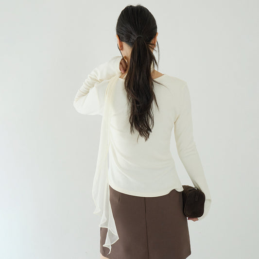 【LD3256】實拍氣質高級感收腰褶皺T恤+圍脖飄帶251012