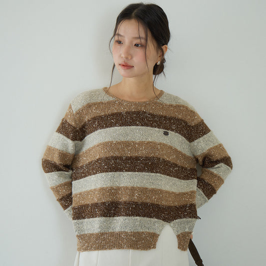 【LD3258】 實拍秋冬高級設計感小開叉條紋針織毛衣251020