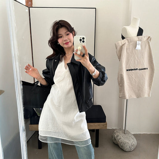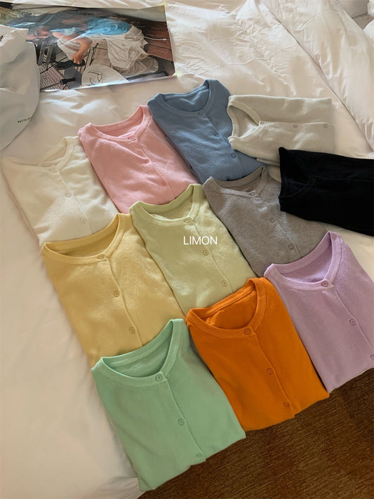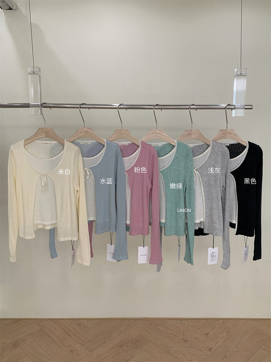 【LNM8207】實拍檸檬小眾寬鬆假兩件薄針織開衫250414