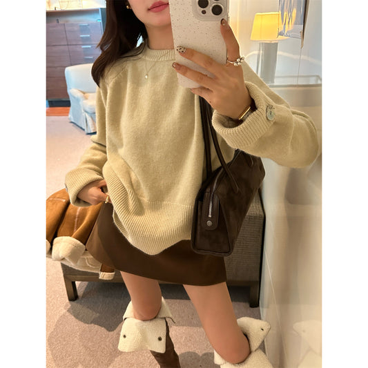【L006265】實拍檸檬冬季圓領貝殼扣大翻袖保暖針織毛衣241118