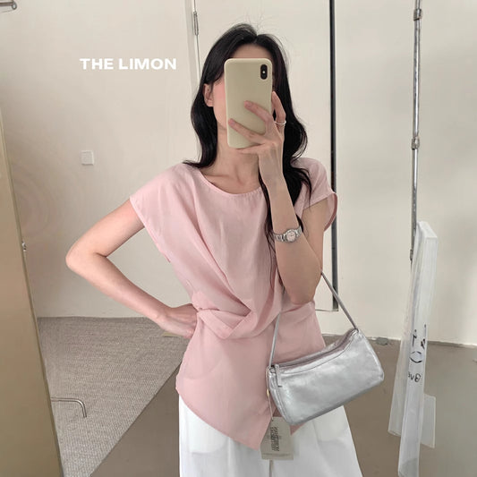 【L8689】實拍檸檬夏季簡約交叉後繫帶襯衫上衣250421