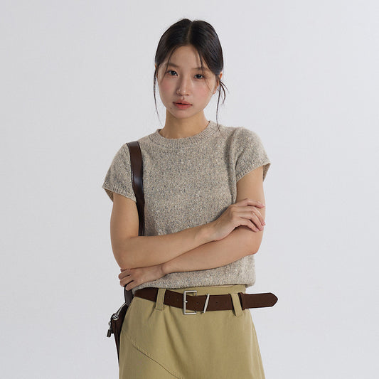 【L3146】實拍高級感羊絨收腰綁帶羊絨小高領短袖T恤250827
