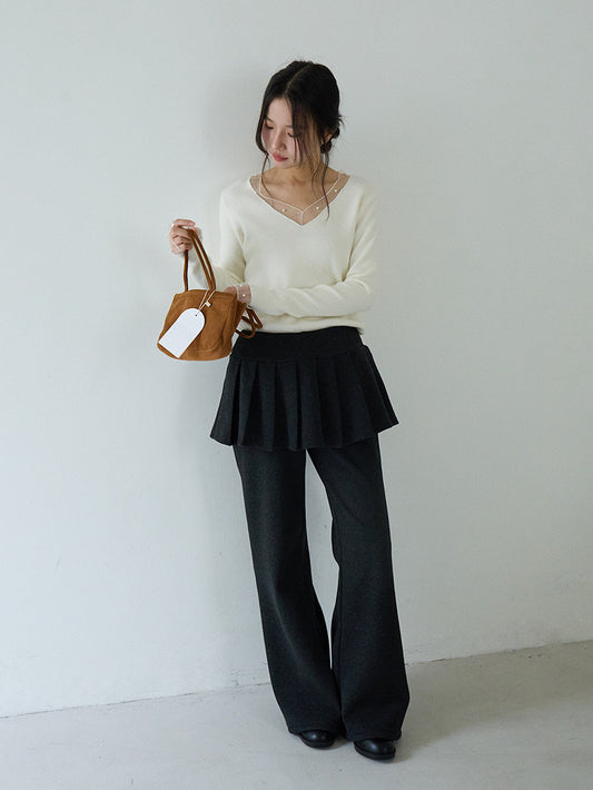 【LD11116】實拍加絨假兩件微喇叭休閒長褲260112