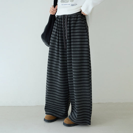 【LD11092】實拍鬆緊腰條紋加絨闊腿長褲(下擺有束)口251230