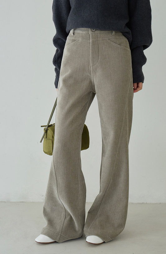 【LD11103】實拍簡約顯瘦一字口袋內刷毛毛呢高腰直筒褲(後鬆緊腰)251231