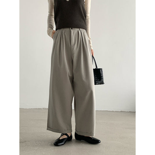 【cimz1765】實拍高腰垂墜感西裝闊腿長褲260122