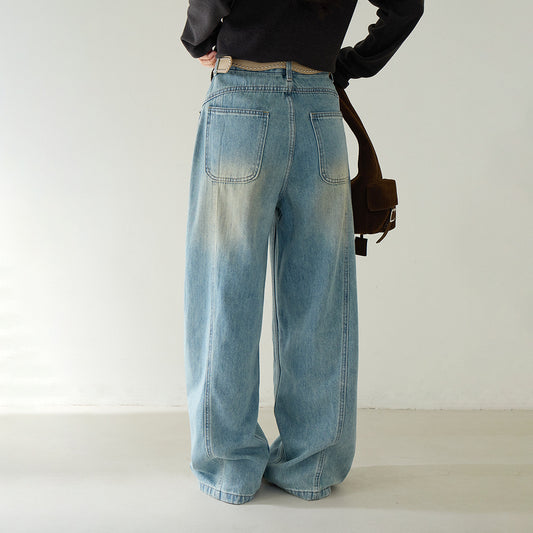 【LD11117】實拍S~XL寬鬆做舊水洗直筒闊腿牛仔長褲260112