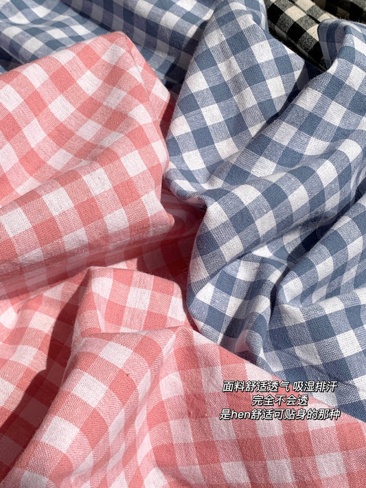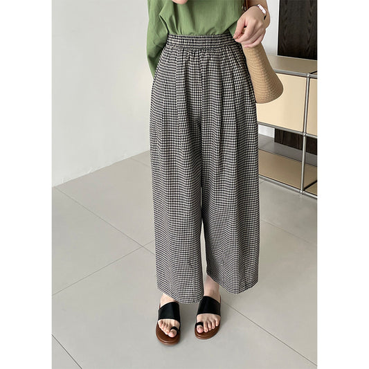 【F60158】實拍夏季日系休閒高腰格子薄款闊腿褲250218