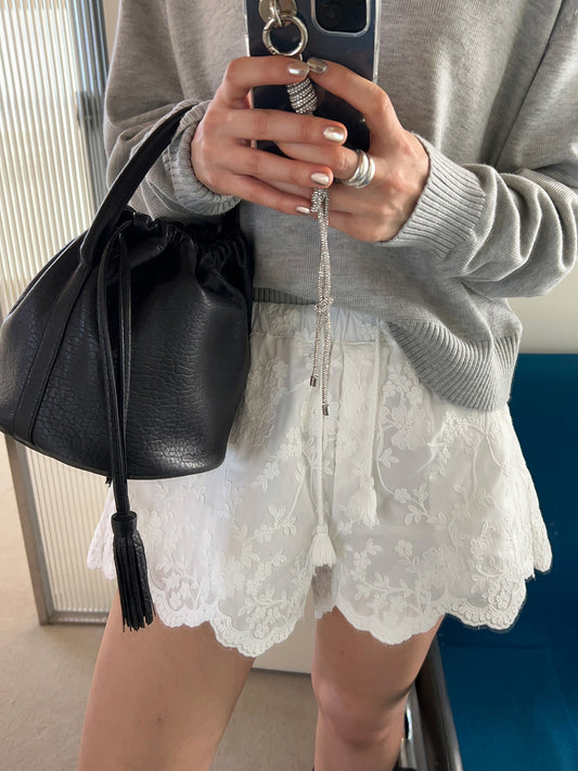 【F60179】韓國東大門質感重工蕾絲顯瘦闊腿短褲(有內裡)250225