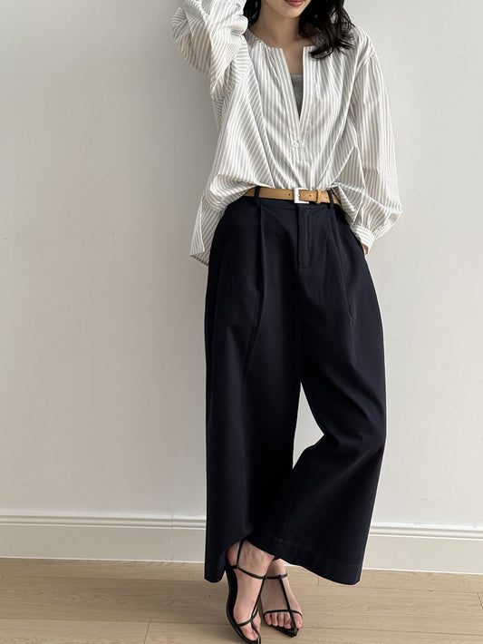 【F60155】韓國復古氣質高級感高腰側邊繫帶垂感寬鬆闊腿褲250218