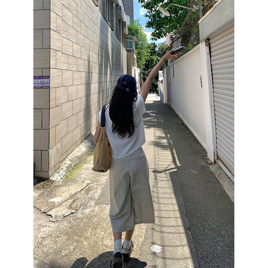 【H5376】實拍純白微壓感寬鬆七分褲250715