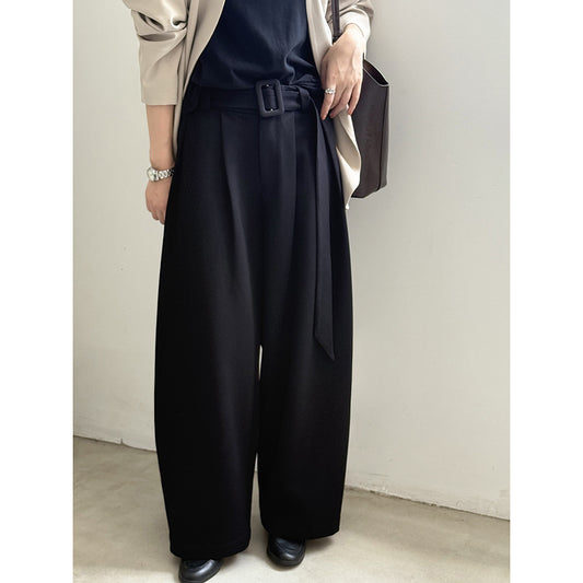 【L3139】實拍S~XL秋冬個性腰帶雙褶高腰闊腿休閒褲250827