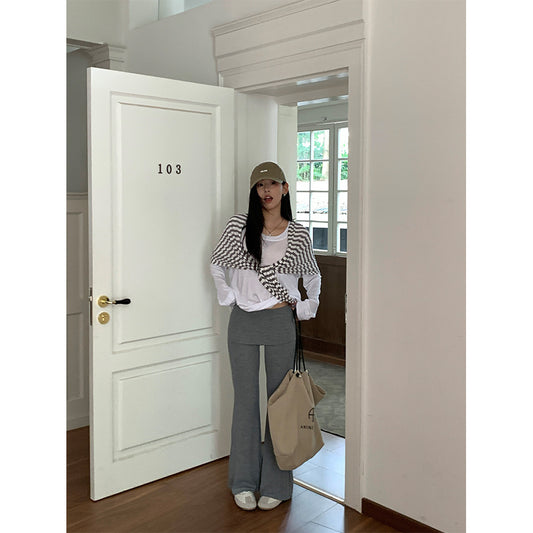 【F60468】實拍針織條紋襯衫+卡其彈性喇叭褲 (分開下單)250616