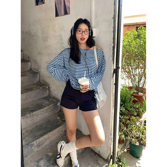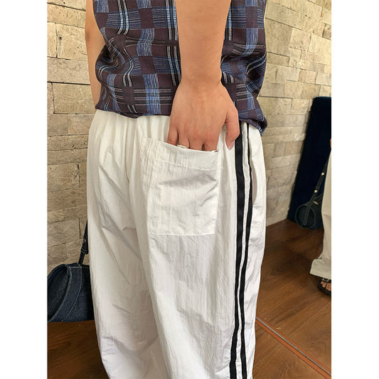 【H5260】實拍夏季韓系運動時髦的撞色條紋棉褲250513
