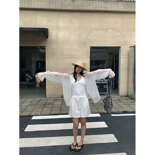 【F60397】實拍韓國原單前後兩穿襯衫+全蕾絲闊腿褲(分開下單)250526