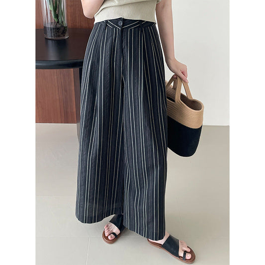 【cim2580】實拍復古老錢風高腰顯瘦條紋休閒長褲250515