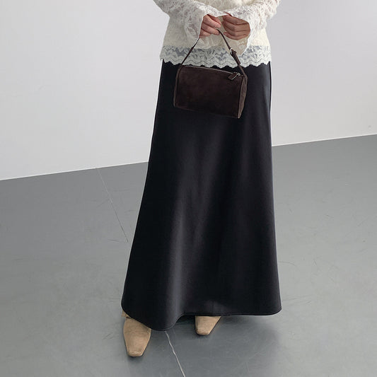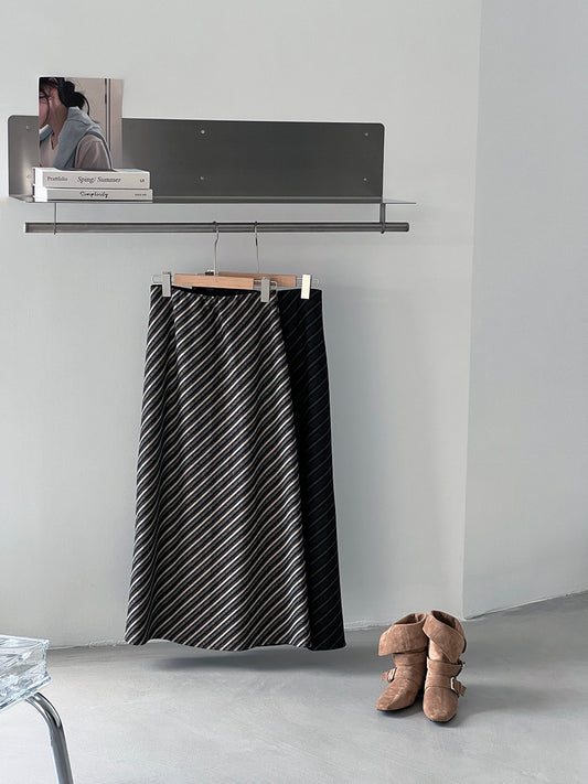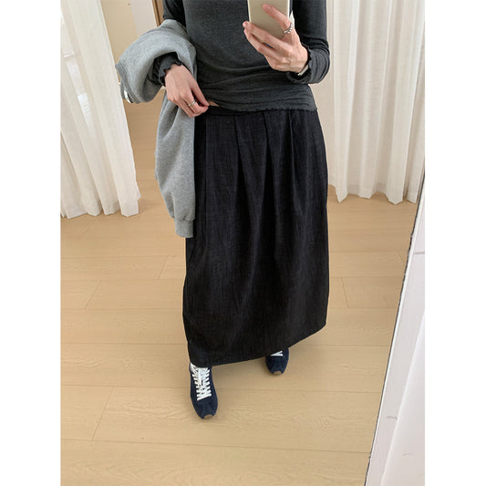 【cim2217】實拍時髦氣質斜紋高腰中長裙251030