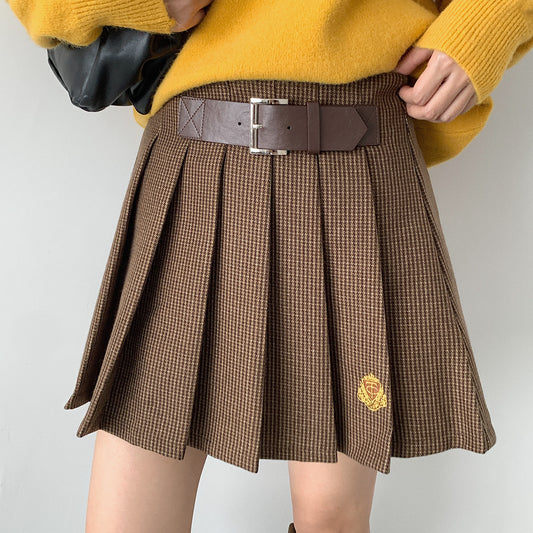 【LD3300】實拍S~XL韓版高腰顯瘦毛呢A字裙+腰帶251103