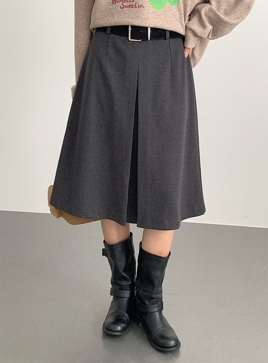 【H561】實拍秋冬簡約鬆緊腰後開叉裙251021