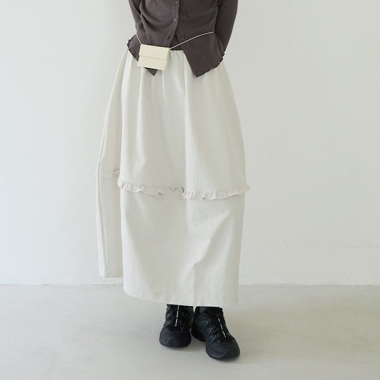 【cim2799】實拍鬆緊腰下襬荷葉PU皮長裙250904