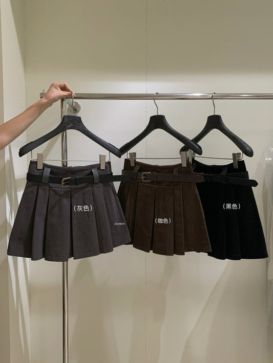【L1118】實拍檸檬家秋季高腰顯瘦百褶裙+腰帶250901