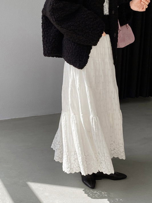 【cim1708】實拍秋冬法式寂靜高腰加厚微花苞A字裙251030