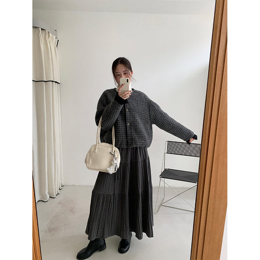 【H5476】實拍秋冬質感簡約細摺鬆緊腰a字傘裙251109