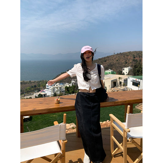 【F60354】韓國夏季設計感高腰前開叉裙250408