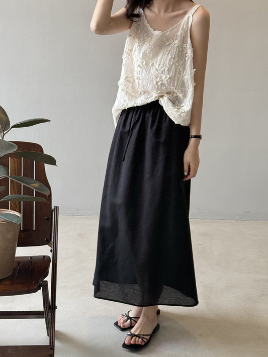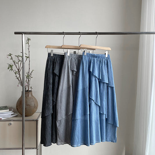 【cim2695】實拍夏日褶皺肌理飄逸A字裙250403