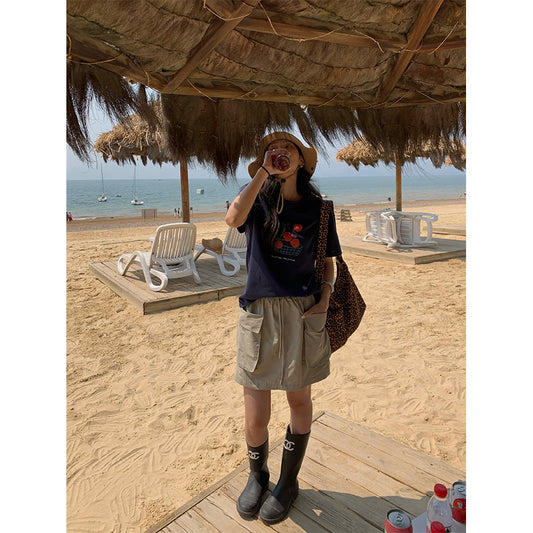 【H5129】實拍夏天休閒抽繩大口袋工裝裙(內有安全褲)250324