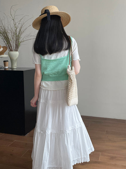 【F60349】實拍簡約鬆弛感條紋無袖背心+A字裙 兩件套250408